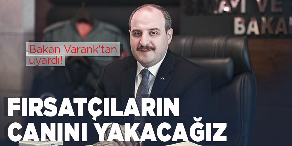 Sanayi ve Teknoloji Bakanı Mustafa Varank, "Fırsatçıların canını yakacağız. Fırsatçılık yapan firmalar bundan sonra bakanlığımızın desteğini asla alamayacak" dedi.