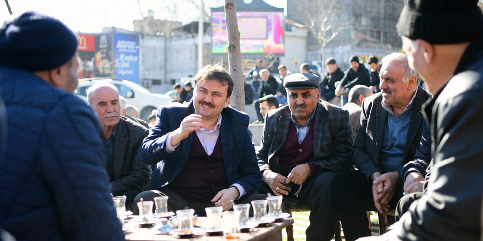 Hafta sonunda havanın güneşli olması ile Demokrasi Meydanı’nı dolduran vatandaşları ziyaret eden Başkan Erkoç, vatandaşlarla çay içerek sohbet etti.