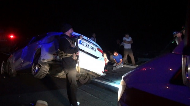 Otomobilin kullanılamaz hale geldiği kazada minibüsün çarpışmanın etkisiyle devrildiği görüldü.
