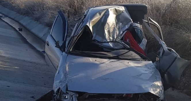 Hurdaya dönen araçtan sağ çıktı!