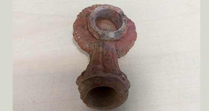 Ailesiyle birlikte doğa yürüyüşü yaparken yerde bulduğu bir seramiğin tarihi eser olduğunu öğrenen Elif Suna Kaya, annesi ve ablası ile birlikte Osmanlı piposu olduğunu öğrendiği tarihi eseri müze müdürlüğüne teslim etti.