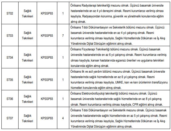 Kahramanmaraş Sütçü İmam Üniversitesi’nden (KSÜ) yapılan açıklamada, “Üniversitemiz Rektörlüğü Sağlık Uygulama ve Araştırma Hastanesinde, 657 sayılı Devlet Memurları Kanunu’nun 4. maddesinin B fıkrasına göre istihdam edilmek ve giderleri Özel Bütçeden karşılanmak üzere 06/06/1978 tarihli ve 7/15754 sayılı Bakanlar Kurulu Kararı’na ekli “Sözleşmeli Personel Çalıştırılmasına İlişkin Esasların ek 2. maddesinin (b) fıkrasına göre aşağıda belirtilen unvanlarda, Lisans Mezunları için KPSSP3, Ön Lisans mezunları için KPSSP93, Ortaöğretim Mezunları için KPSSP94 KPSS (B) grubu puan sıralamaları esas alınmak suretiyle sözleşmeli sağlık personeli alınacaktır.” ifadelerine yer verildi.