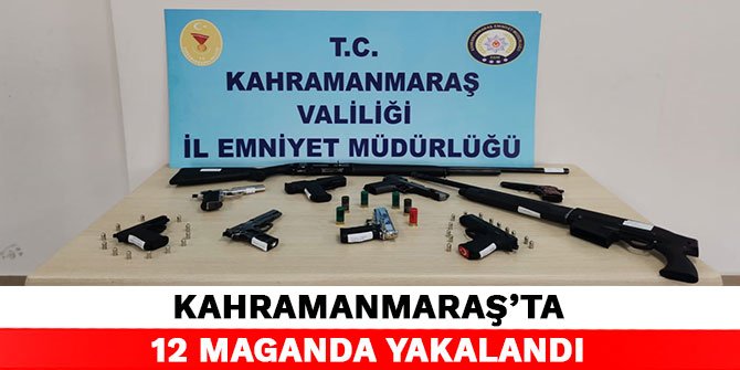 Alınan bilgilere göre, Kahramanmaraş İl Emniyet Müdürlüğü'ne bağlı ekipler tarafından kent genelinde havaya ateş eden magandalara karşı yaptığı denetim ve çok baskınlarda 12 kişi suçüstü yakaladı. Yakalanan şüphelilerden 3 adet ruhsatsız tabanca, 2 adet ruhsatlı tabanca, 1 adet ruhsatsız pompalı tüfek, 1 adet ruhsatsız av tüfeği, 5 adet kurusıkı tabanca olmak üzere toplam 12 adet silah ve çok sayıda mermi ele geçirildi.