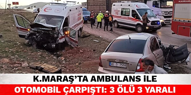 Kahramanmaraş’ın Elbistan ilçesinde ambulans ile otomobil çarpışması sonucu 3 kişi ölü, 3 kişi yaralandı.