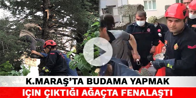 Kahramanmaraş’ta budama yapmak için evinin bahçesindeki ağaca çıkan ve fenalaşan vatandaşın, yardımına itfaiye ekipleri yetişti.