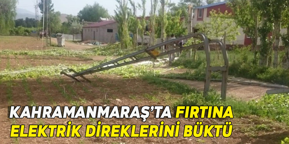 Kahramanmaraş'ın Elbistan ilçesinde çıkan fırtına, kavak ağaçlarını devirip demir elektrik iletim hatlarını kopararak direklere zarar verdi.