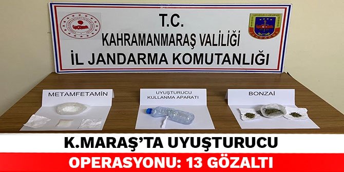 Kahramanmaraş’ta jandarma ekipleri tarafından yapılan 7 ayrı uyuşturucu operasyonunda 13 kişi gözaltına alındı.