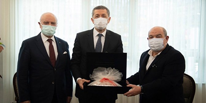 MADO Yönetim Kurulu Başkanı Mehmet Kanbur ile eski Milli Eğitim Bakanı Mehmet Sağlam, Milli Eğitim Bakanı Ziya Selçuk’u makamında ziyaret etti.