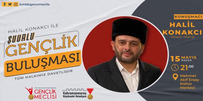 Büyükşehir Belediyesi Gençlik Meclisi, İmam – Hatip Halil Konakcı ile Gençlik Buluşması düzenliyor. 15 Mayıs Pazar günü saat 21.00’de Mehmet Akif Ersoy Kültür Merkezi’nde gerçekleştirilecek etkinliğe tüm vatandaşlar davet edildi.