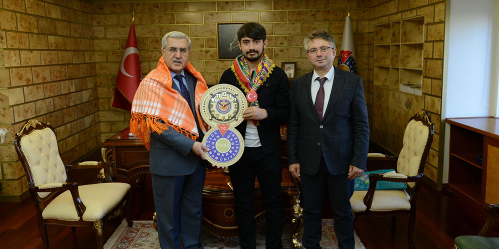 Kahramanmaraş Sütçü İmam Üniversitesi Rektörü Prof. Dr. Niyazi Can, 26'ncı Uluslararası Yörük Türkmen Toyu'nda Türkiye'nin en genç Yörük Türkmen Beyi ilan edilen, KSÜ Eğitim Fakültesi Türkçe Öğretmenliği Bölümü öğrencisi Osman İncecik’i Rektörlük Makamında kabul ederek bir süre görüştü.