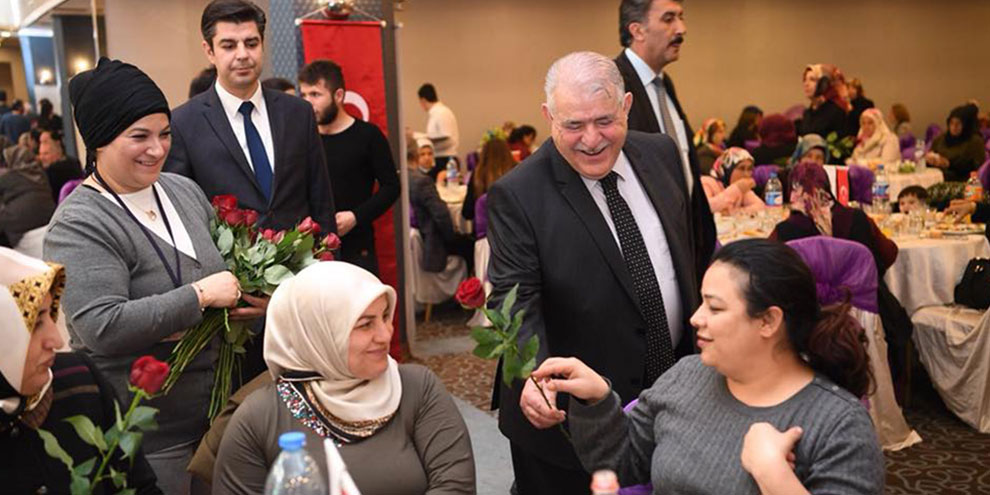 Kahramanmaraş Onikişubat Belediyesi ve KADEM ( Kadın ve Demokrasi Derneği) ortaklığında 8 Mart Dünya Kadınlar Günü sebebiyle bir yemek organizasyonu düzenlendi. Yemek Kahramanmaraş Saffron Otel’de 300 kişinin katılımıyla gerçekleşti. Organizasyona, Kahramanmaraş Valisi Vahdettin Özkan’nın eşi Ruhan Özkan, Onikişubat Belediye Başkanı Hanefi Mahçiçek, Ak Parti Onikişubat Kadın Kolları Başkanı Banu Pakdil, Şair İnci Okumuş ve KADEM Başkanı Mutlu Aslantürk, şehit aileleri, STK temsilcileri katıldı.