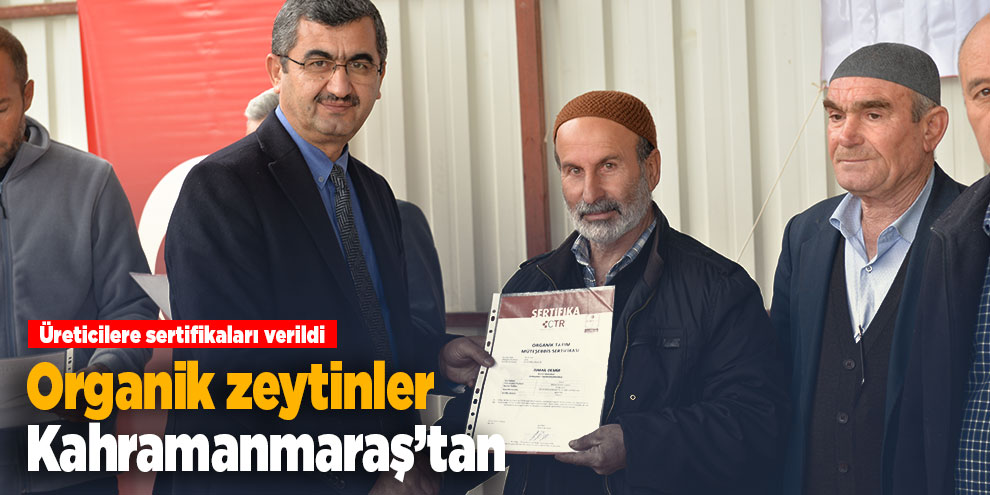 “Kahramanmaraş İli Sır Baraj Havzası Organik Zeytin ve Tüketici Bilinci Oluşturma Projesi” kapsamında; proje üreticilerine sertifika dağıtım töreni düzenlendi.