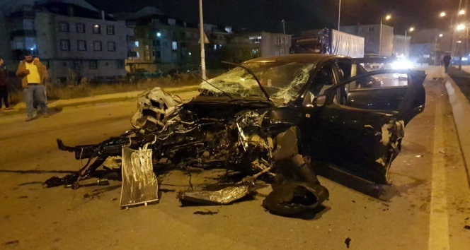 Park halindeki tıra çarptıktan sonra refüje savrulan otomobilin motor kısmı metrelerce ileriye fırlayarak bir anda alev topuna döndü. Karşı yönden gelen başka bir araç sürücüsünün, fırlayan motorun üstüne doğru geldiğini fark ederek ani fren yapması faciayı önledi. Araç kullanılamaz hale gelirken, arabanın kaza sonraki hali olayın ciddiyetini gözler önüne serdi.