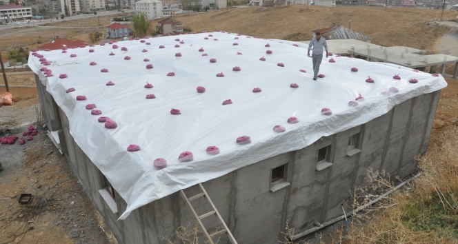 Hakkari’nin Yüksekova ilçesinde yaşayan Taner Şahin (36) kış öncesi çatısız olan evinin damına brandayla kapatarak, poşetler içine doldurduğu kumlarla önlem aldı.
