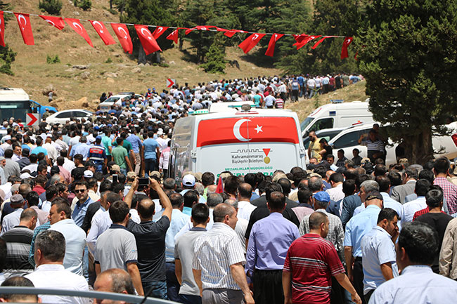 Kahramanmaraş’ın Ekinözü ilçesi Kazıktepe mevkiinde terör örgütü PKK'nın saldırısında şehit düşen korucu Fatih Güngör (25) memleketi Kahramanmaraş’ın Çağlayancerit ilçesinde son yolculuğuna uğurlandı.
