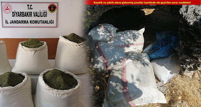 Diyarbakır İl Jandarma Komutanlığı ekipleri tarafından alınan bir istihbarat üzerine yapılan çalışmalarda Lice ilçesi kırsalında kayalıkların içine çuvallarla gizlenmiş vaziyette 158 kilo esrar maddesi ele geçirildi.