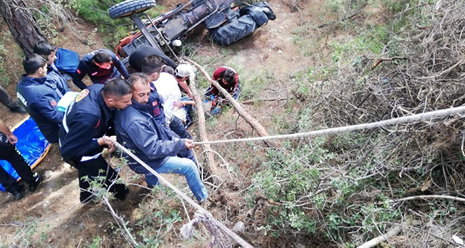 Traktörle 15 metreden uçtu, yaralı olarak kurtuldu